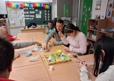 U ugodnoj i poticajnoj atmosferi učenici su sudjelovali u raznim kreativnim aktivnostima – izradi prigodnih uskrsnih ukrasa, crtanju i bojanju proljetnih motiva te timskom radu koji je dodatno ojačao njihove socijalne vještine. Posebnu radost i motivaciju donijelo je sudjelovanje gostiju – nogometaša NK Varaždin, koji su se rado uključili u aktivnosti i svojim prisustvom razveselili učenike.