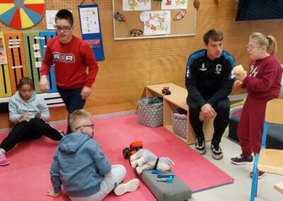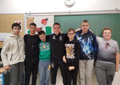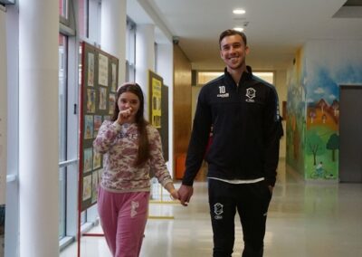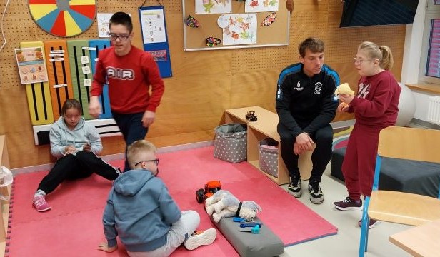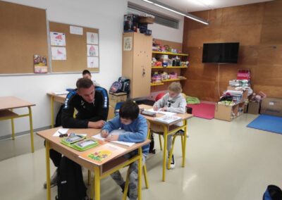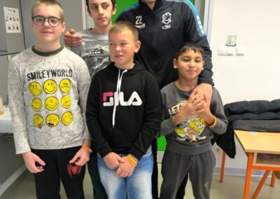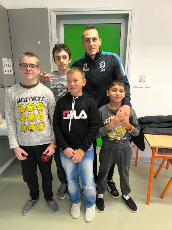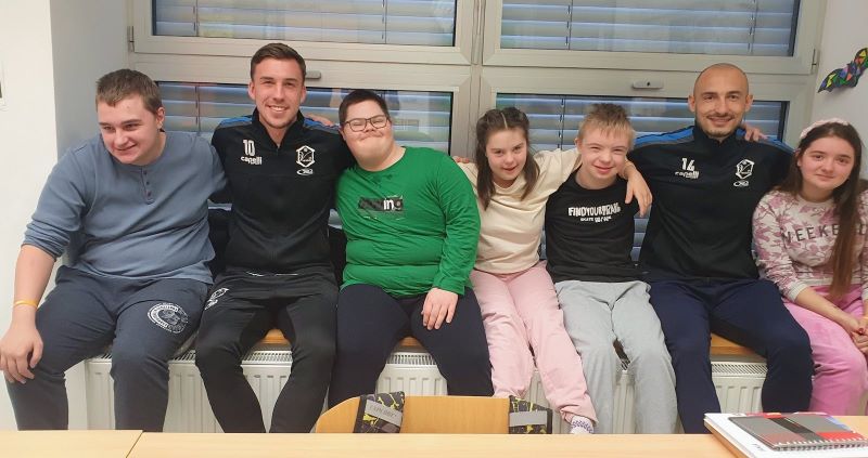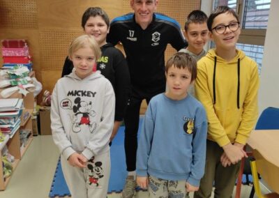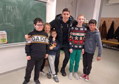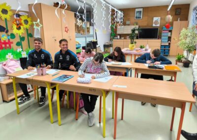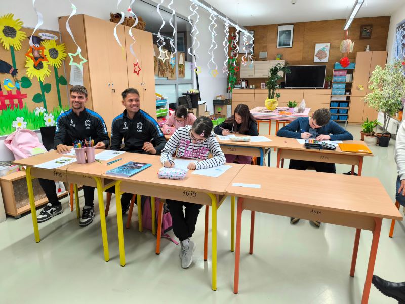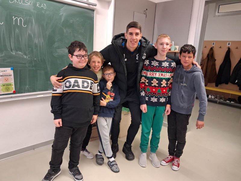 Obzirom na veliko uzbuđenje učenika, već drugi školski sat igrači su ušli u učionice i razveselili učenike. Sat vremena koje su proveli s učenicima donijelo im je spoznaju o važnosti strpljenja i podrške u radu s učenicima s teškoćama. Uz topao osmijeh igrači su postali njihovi pomoćnici u nastavi te se priključili nastavnom procesu, a veliki odmor proveli su na školskim hodnicima šetajući i družeći se s njima. Učenici su bili spremni te pripremili markere i papire te iskoristili priliku za autograme i fotografiranje sa svojim uzorima, a usput su i dali koji savjet o igri za subotnju utakmicu protiv GNK Dinamo.