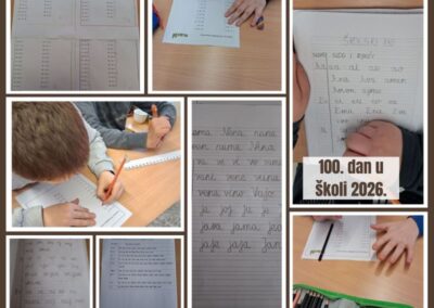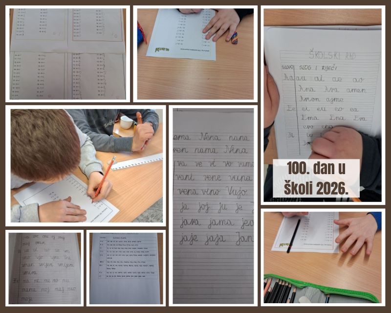 Na satu hrvatskog jezika ispisali su ukupno 100 slogova i riječi obrađenih slovima rukopisnog pisma, dok su na matematici pokazali zavidno znanje rješavajući zadatke oduzimanja u sklopu prirodnih brojeva do 20. Svaki učenik doprinio je zajedničkom cilju, dok konačni zbroj nije dosegao točno 100 riješenih zadataka.