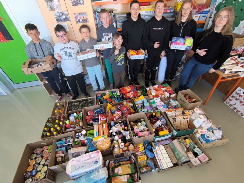 Prikupljeno je 550 različitih artikala kao što su tjestenine, paštete, brašno, ulje, gotove juhe, začini, namirnice potrebne za kolače, vlažne maramice, paste za zube, šamponi, tekući sapuni,…